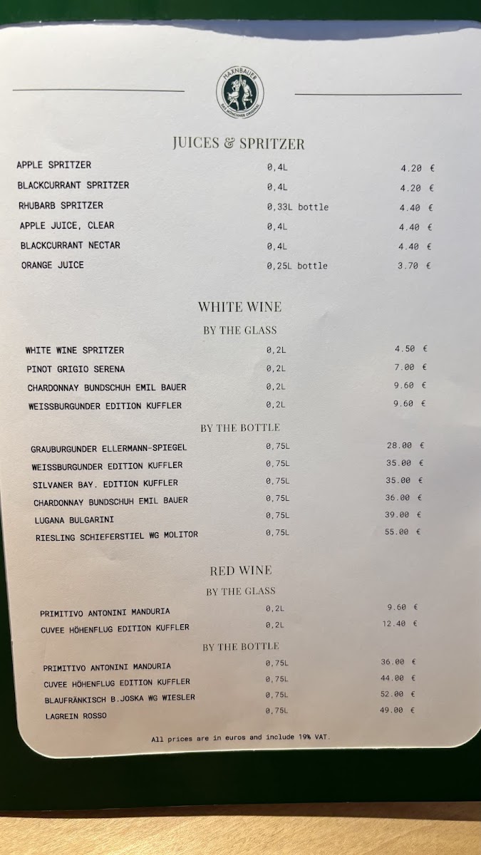 This menu is suitable for casual dining occasions, with portions designed to be substantial and fulfilling. It supports flexible orders, allowing substitutions on certain side dishes to accommodate preferences. The menu structure is primarily organized around traditional German food categories including appetizers, main courses, sides, and desserts, alongside a selection of beers and other drinks.